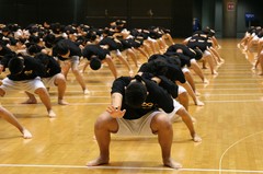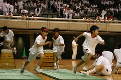 撮ってきました室内での運動会。500枚近く撮りましたが、諸事情があり、アップできる画像はたいへんに限られます。電池は300枚あたりで、一度交換しました。ISレンズは電池を消耗します。やはり、激しい動きは止められません。ISOは1600、ISレンズ2本で撮りました。(17-85mmと28-135mm)ホントは白レンズで撮りたかった。。。掲示板でのアドバイスに従って、絞りを開放にして、シャッタースピードを稼ぐために、Avモード(絞り優先)多用。手ぶれ補正機構、AI