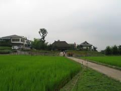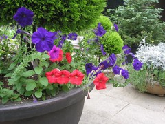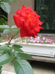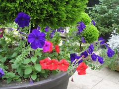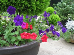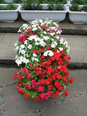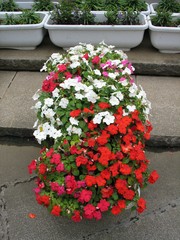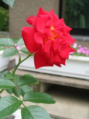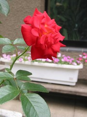 後ろの白いプラスチックの花壇が