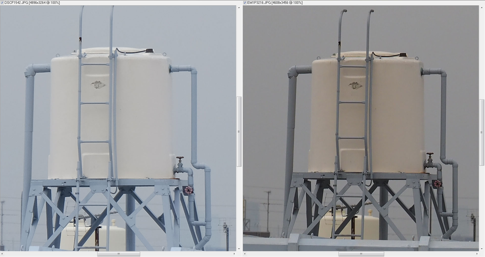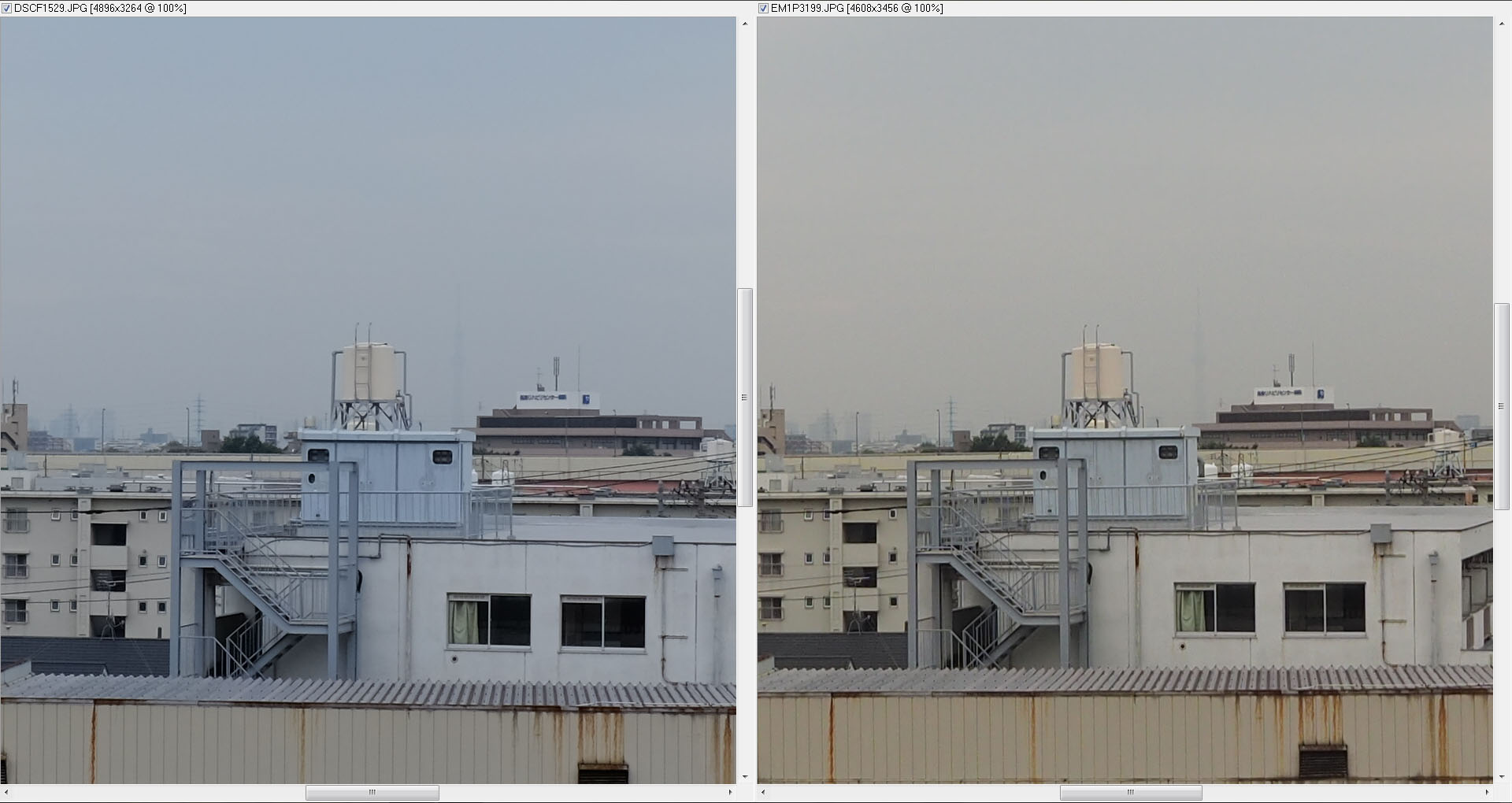 比較画像(左:XF18-135mmF3.5-5.6 R LM OIS WR 右:LUMIX G X VARIO 35-100mm F2.8)